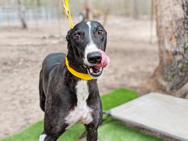 Looking for tall, dark and handsome? Well I might be the one! I am a beautiful boy, with a typical greyhound nature, very laid-back and gentle. I do have plenty of energy for playtime though! My doggy friends and I get on really well but really not sure about those cats. If you would like a kind loving gentleman in your life, you better come meet me!