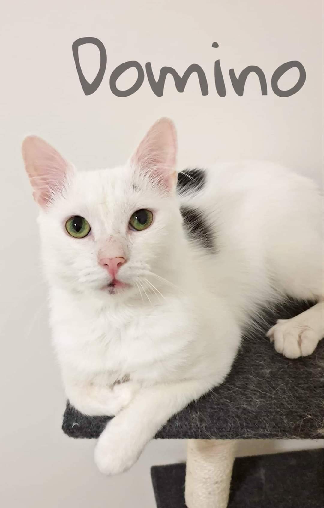 Domino is a sweet little boy, he has the softest, snow white fur topped off with a black tail 😍 Domino came to us in a horrible condition :( skinny, and scratches all over as he was regularly bullied by big male cats :( Now he is his most beautiful self thanks to his amazing foster carer 🥰