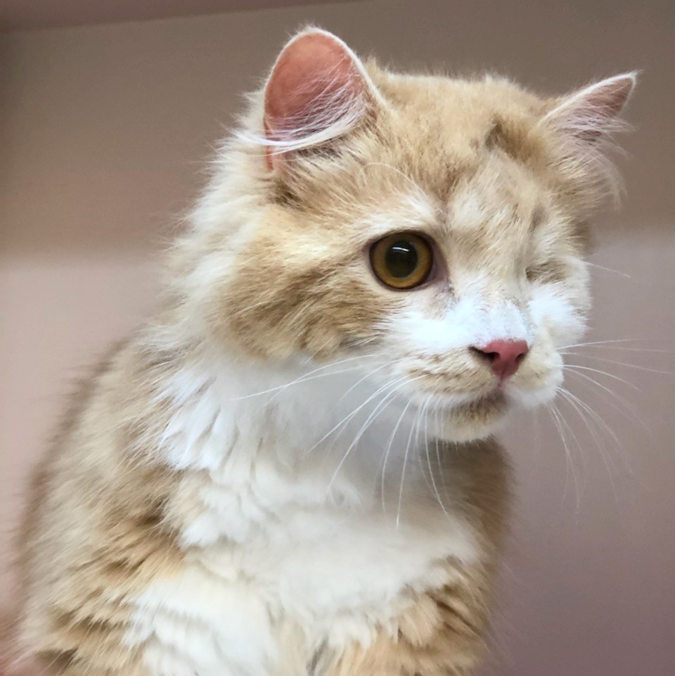 My eye was recently removed following a car accident. It left me with facial fractures and I've since been recovering in hospital. I’m feeling absolutely fabulous now and lucky to be alive. The vets have told me that my injuries will cause no lasting problems besides sounding a little snuffly at times, but this is just from the way my bones have healed.