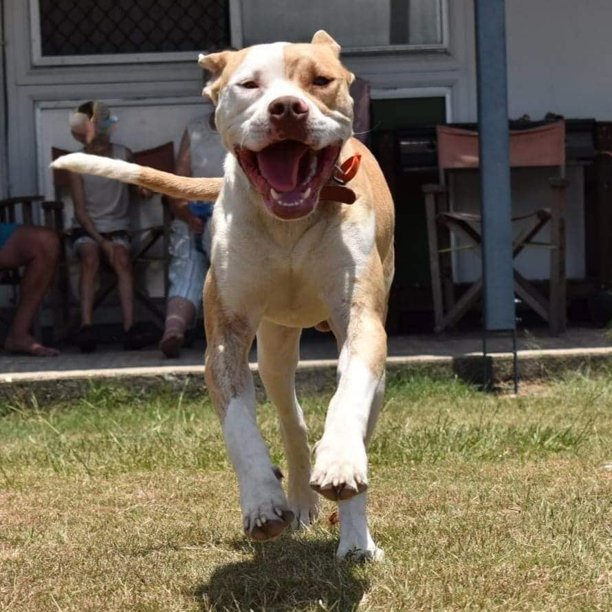 Friendly - yes even the cat likes me. I started off a bit rough with her but one growl from the kitty and I learnt my place. The other dog who lives here is the boss - everyone listens and does what she says. We like to run around the yard chasing the tennis ball and playing with each other.