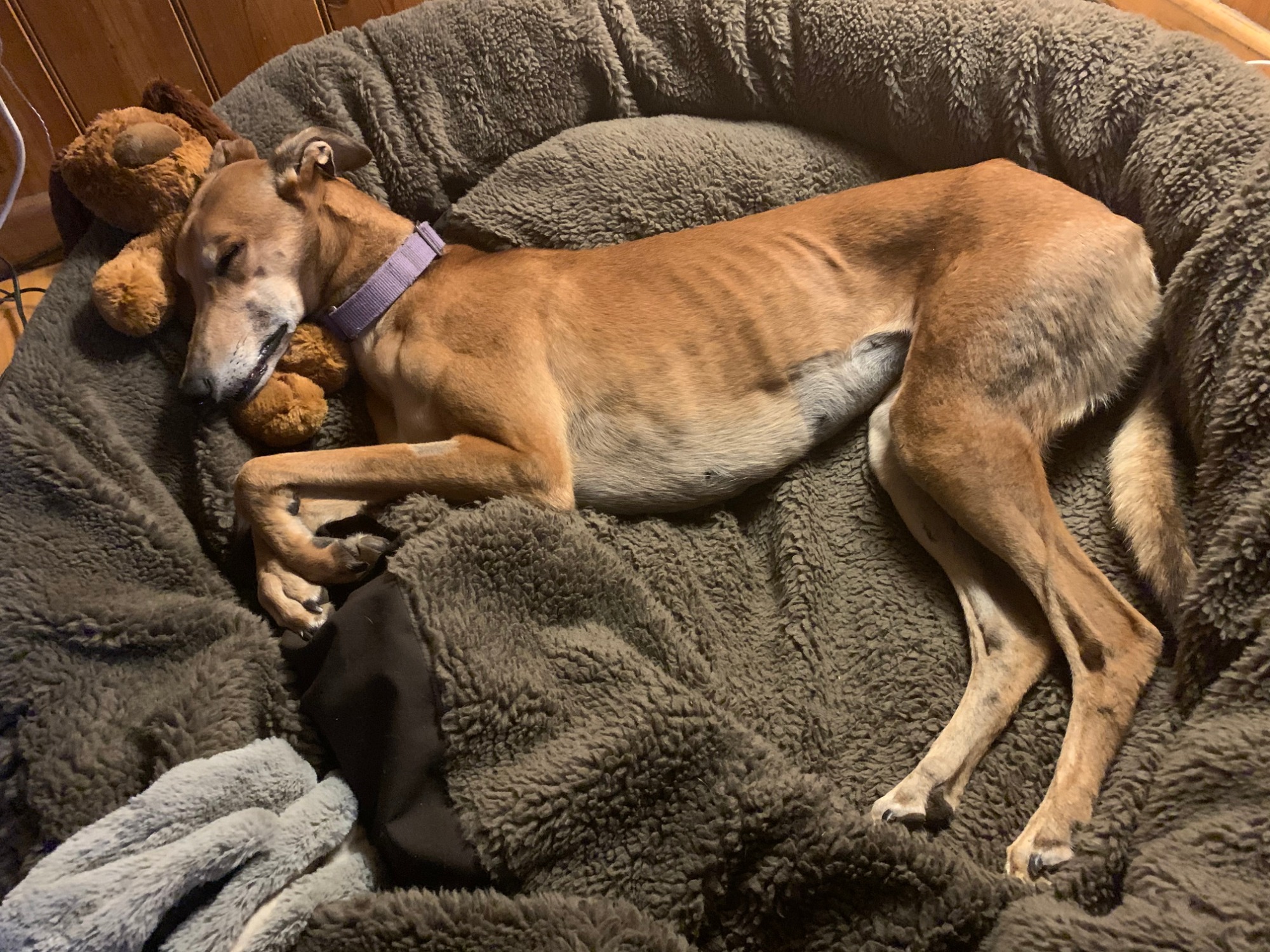 Jenna loves her walks and is still VERY interested in small fluffys, so you’ll need to keep a close watch on her around smaller dogs and animals. Jenna is thoroughly enjoying morning walkies followed by lounging around for the rest of the day. A harness for walkies would be a wonderful present for her making a walk a pleasure for Jenna and her people. Jenna is so clever to as she likes to chase a ball as well!