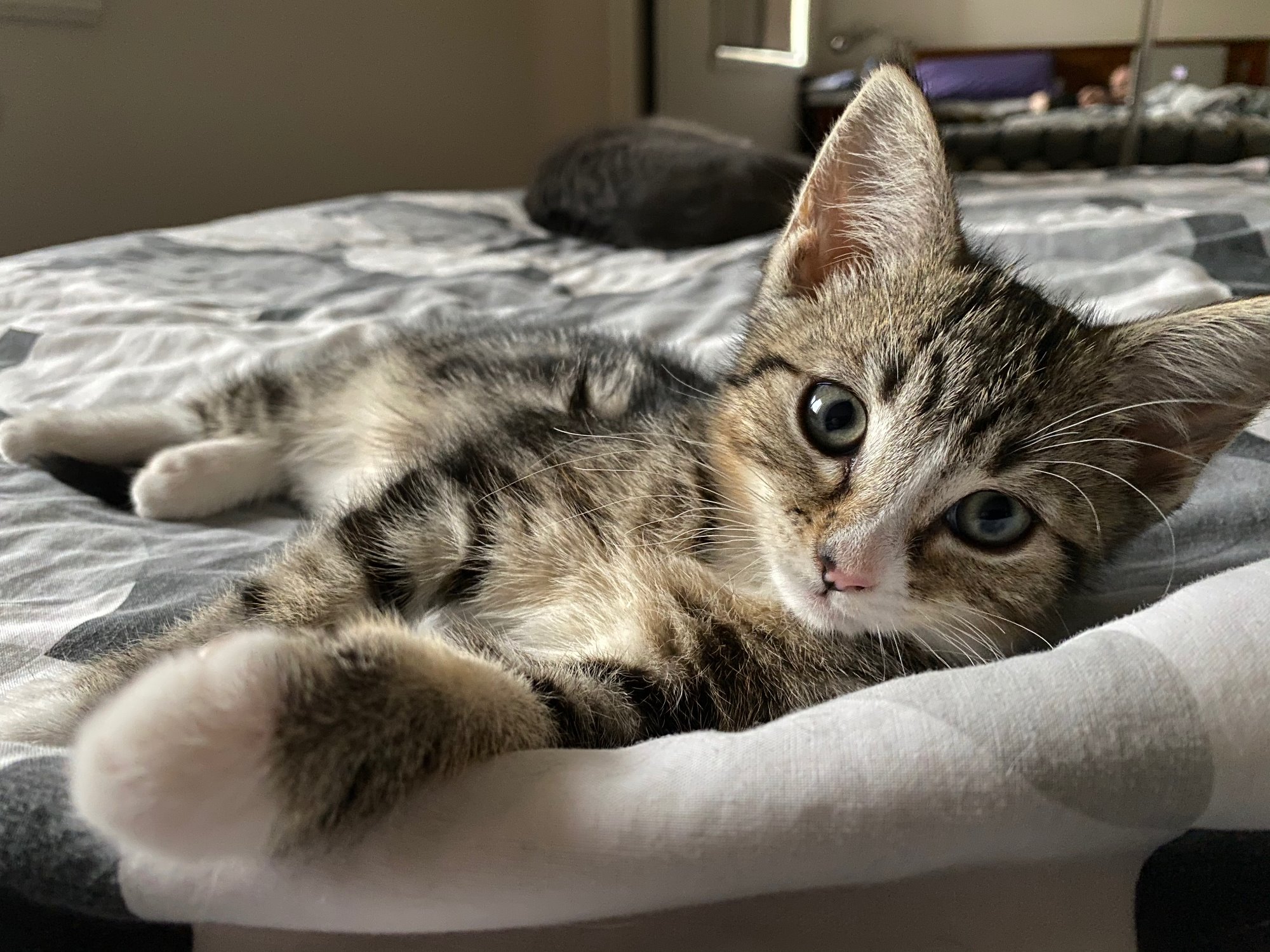 Clove is a three-month-old girl with a gentle temperament. She really enjoys snuggling with humans and seeks out your company. Clove also gets on well with other cats. She has been kid-tested as passed with flying colours as she is happy to sit in children's laps for hours.