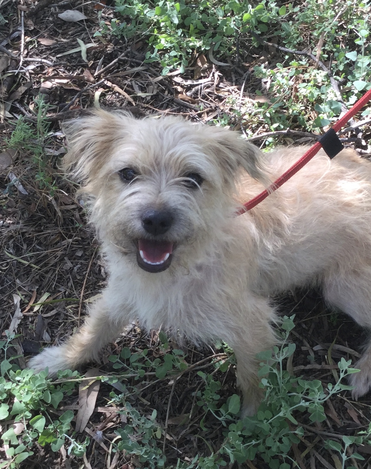 This lovely scruffy gal has come into care with us from a rural pound, and has blossomed into a super happy dog.