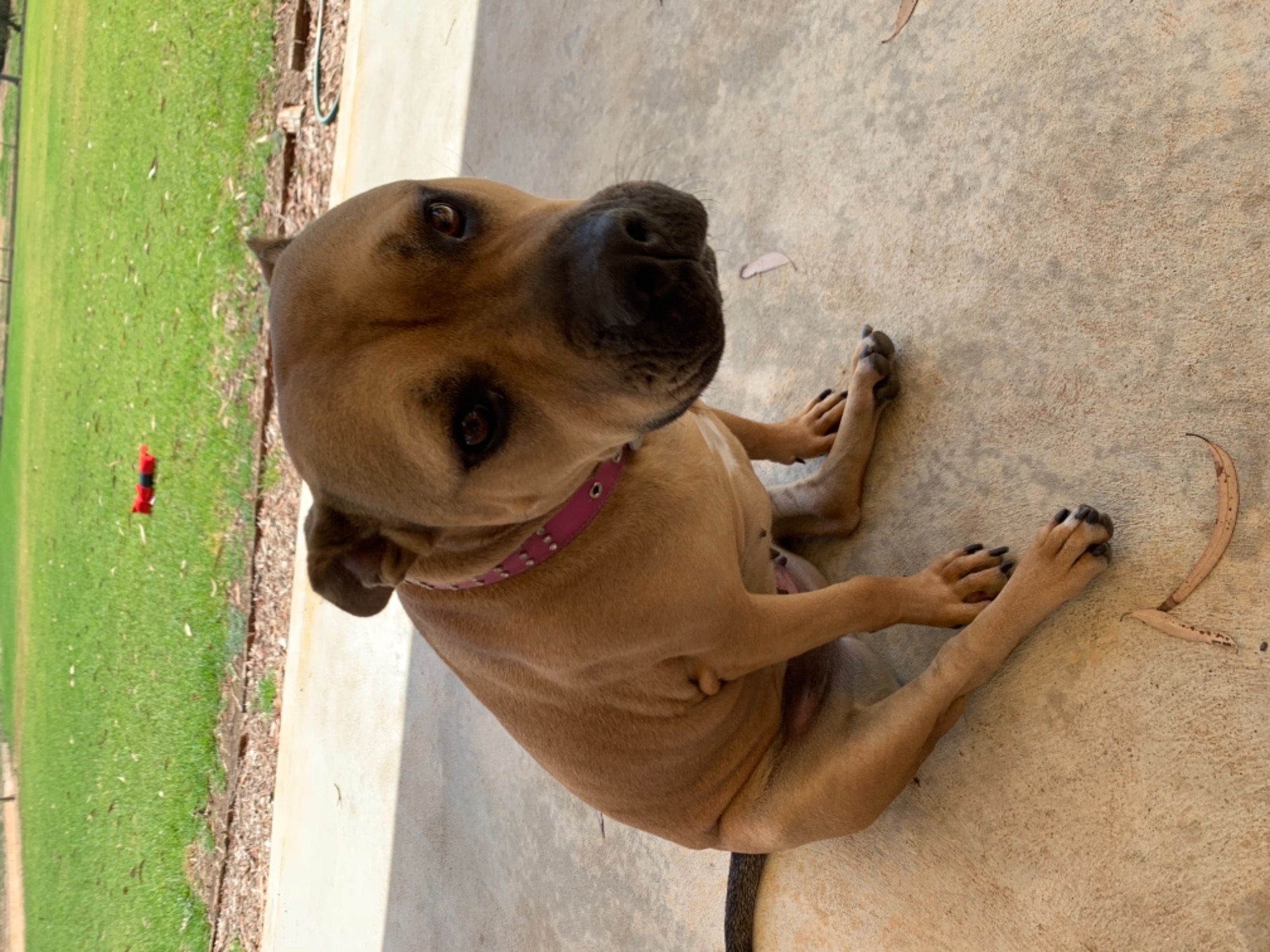 She is best only dog and no cats. Piper isn’t a big barker and doesn’t tear up the garden. She is happy outside doing her own thing, sun baking or viewing her domain on her bed then will come in to see what your doing. She will wait at your feet while her dinner is being prepared. She likes to sleep inside and will more than happily jump into bed under the covers for snuggles. Piper is weary of some men. When introducing to new people, have piper on lead. Best with home with no children. Looking for a furever home for piper that understands what she has been threw and will work with her and love her furever