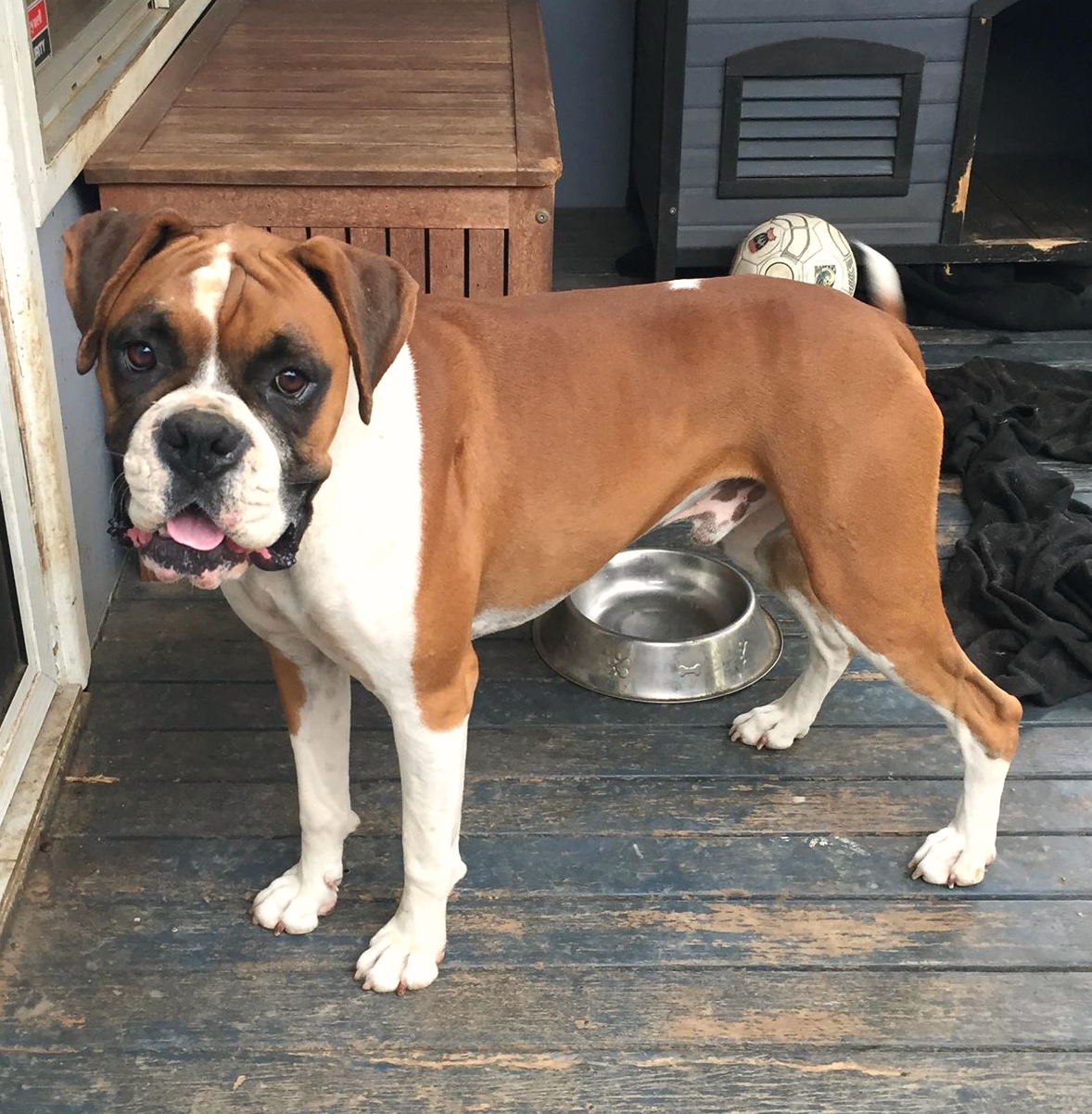 He shows great manners on the lead, comes with knowledge of basic commands, does love a good jump up on new people to show his affection, however it’s no secret that Boxers seem to be born springs in their feet and with some consistency, this can be trained easily.