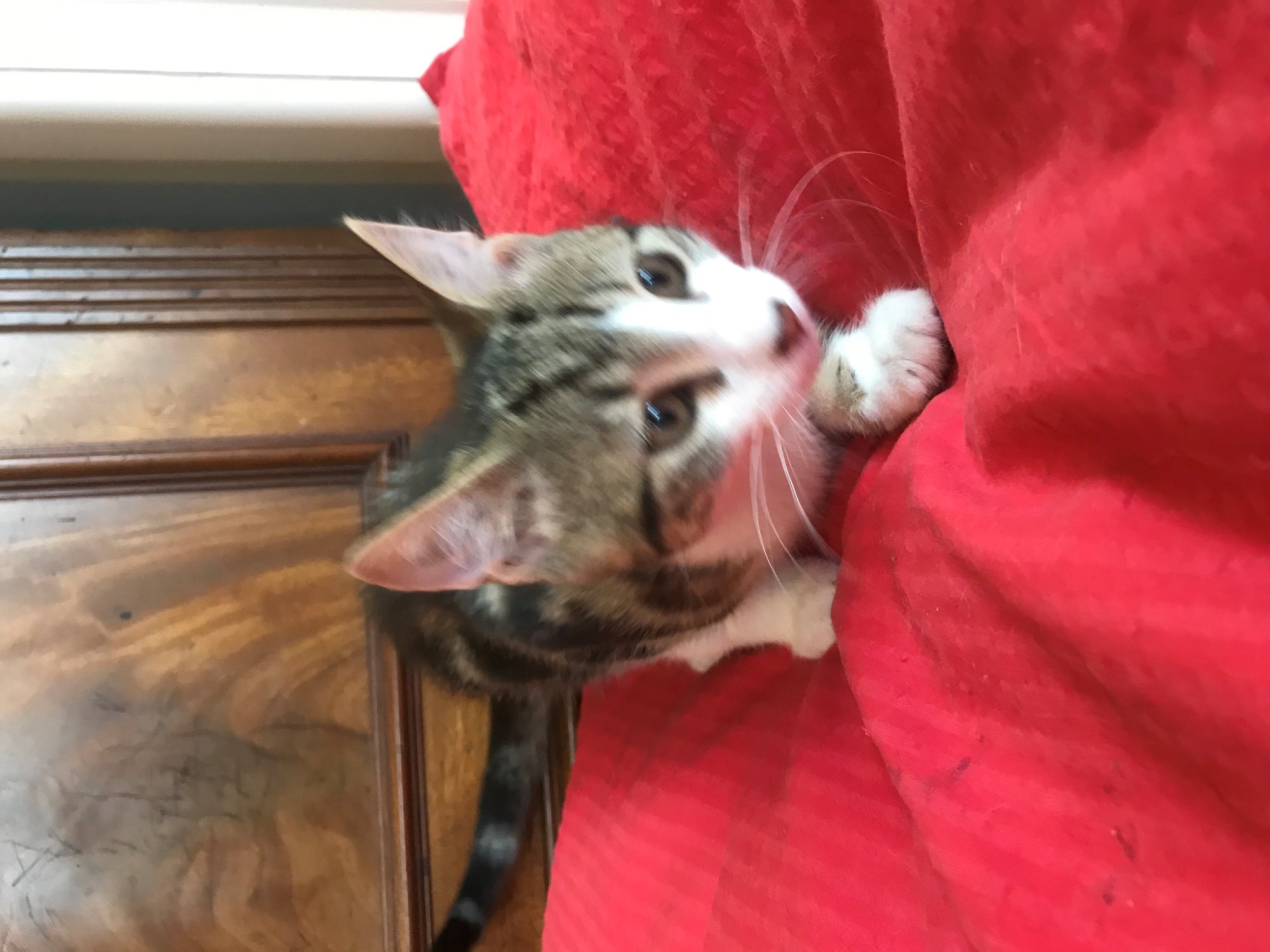 Buddha is a 12 week old male with an exceptionally pretty face and beautiful nature. He's playful and sociable, loves nothing more than a belly rub and a cuddle. Will investigate each nook and cranny of his world and is brave and bold. Loves to play with anyone who he comes into contact with and when he's done with that, will sit on your lap and adore you with long looks and a kitty smile. In a playground, Buddha would be king of the castle and the most popular kid in town :)