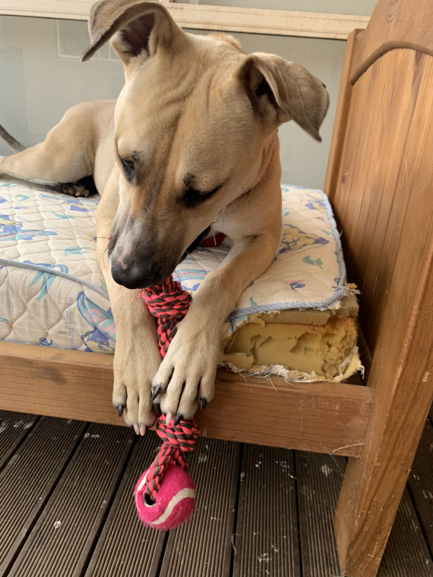 Alinta can amuse herself when outside on her own and loves to play with toys, especially her rope tuggy. She enjoys chasing after balls too so her family must have a decent yard for her to run around in, or enjoy taking her to the dog park.