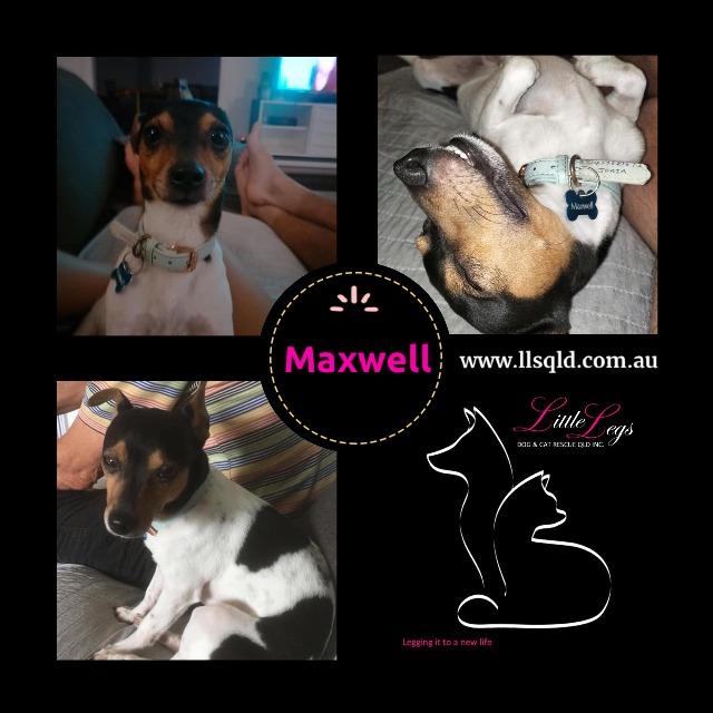 Maxwell is an inside dog who doesn't like being left alone and is known to cry/whine. His new family will need to continue his training so he learns being left alone is okay. A secure fence close to the ground is required.