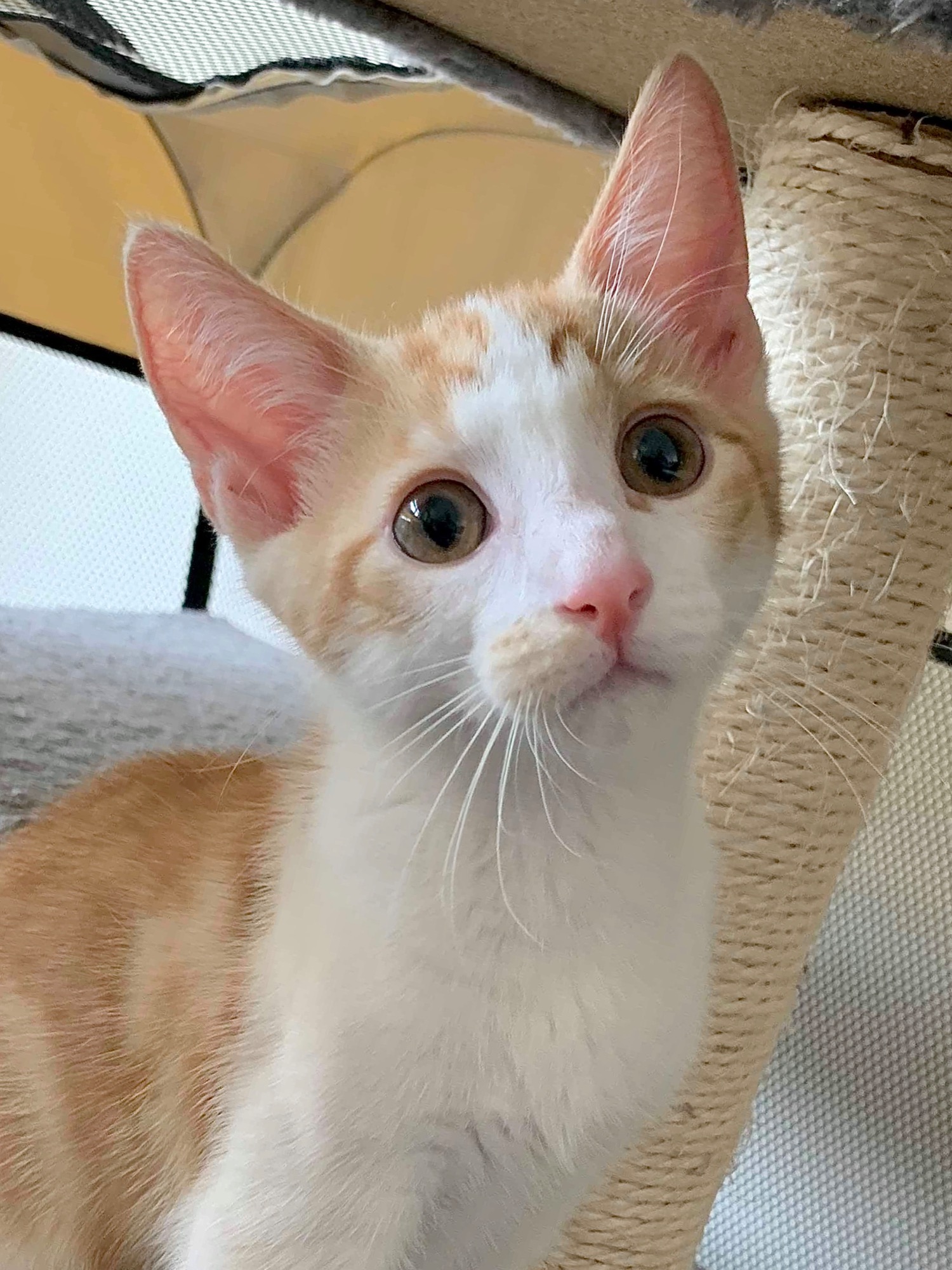 My name is Rudi and I'm a 14 week old Manx x kitten.....yes that's right, I have a little stumpy tail. I'm currently in foster care with my sister, Cilla, 1 adult host cat as well as my foster family which includes children. I'm not currently living with dogs, and not quite sure how I would cope with them.