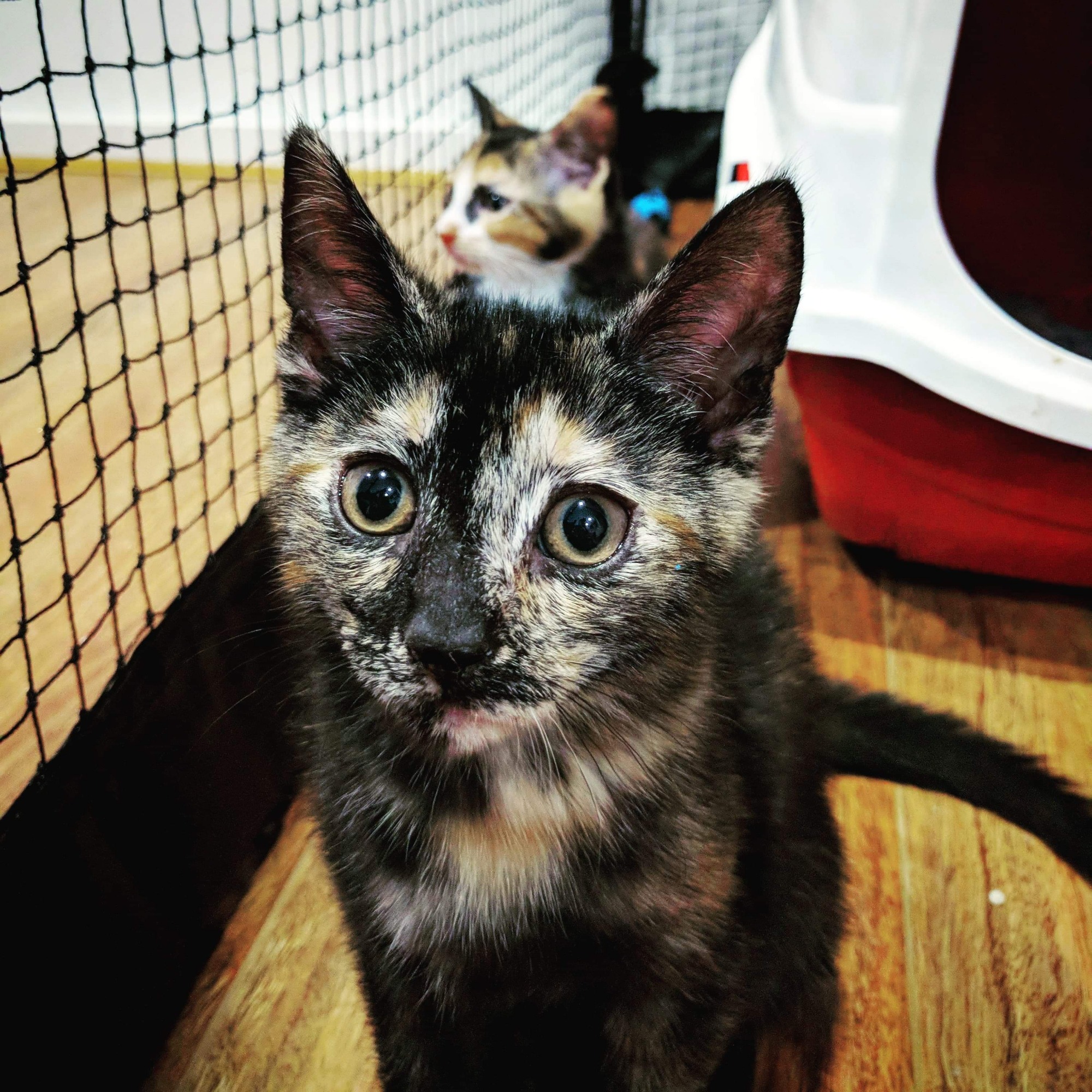 This little girl is full of energy and loves nothing more than carrying her manky toy mouse around the house. The manky toy mouse was once impounded by her foster Mum due to her obsessive behaviour, failure to take in any other kittens feelings and inability to share. However, once Oaks had considered these factors, manky mouse was returned (conditions apply). Oaks purrs as soon as you pick her up and will happily purr around your feet and legs. Her beautiful markings match her gorgeous nature, and her kitten antics will leave you in fits of laughter. Oaks has been desexed, vaccinated, microchipped, flea and wormed treated. She will be required to be an indoor only cat due to the dangers of the outside world and her inquisitive nature. Oaks has been around young children, other cats and a dog, however supervision and slow introductions are crucial to ensure her safety. Oaks and her manky mouse (no adoption fee for manky mouse) look forward to being an important member of your family.