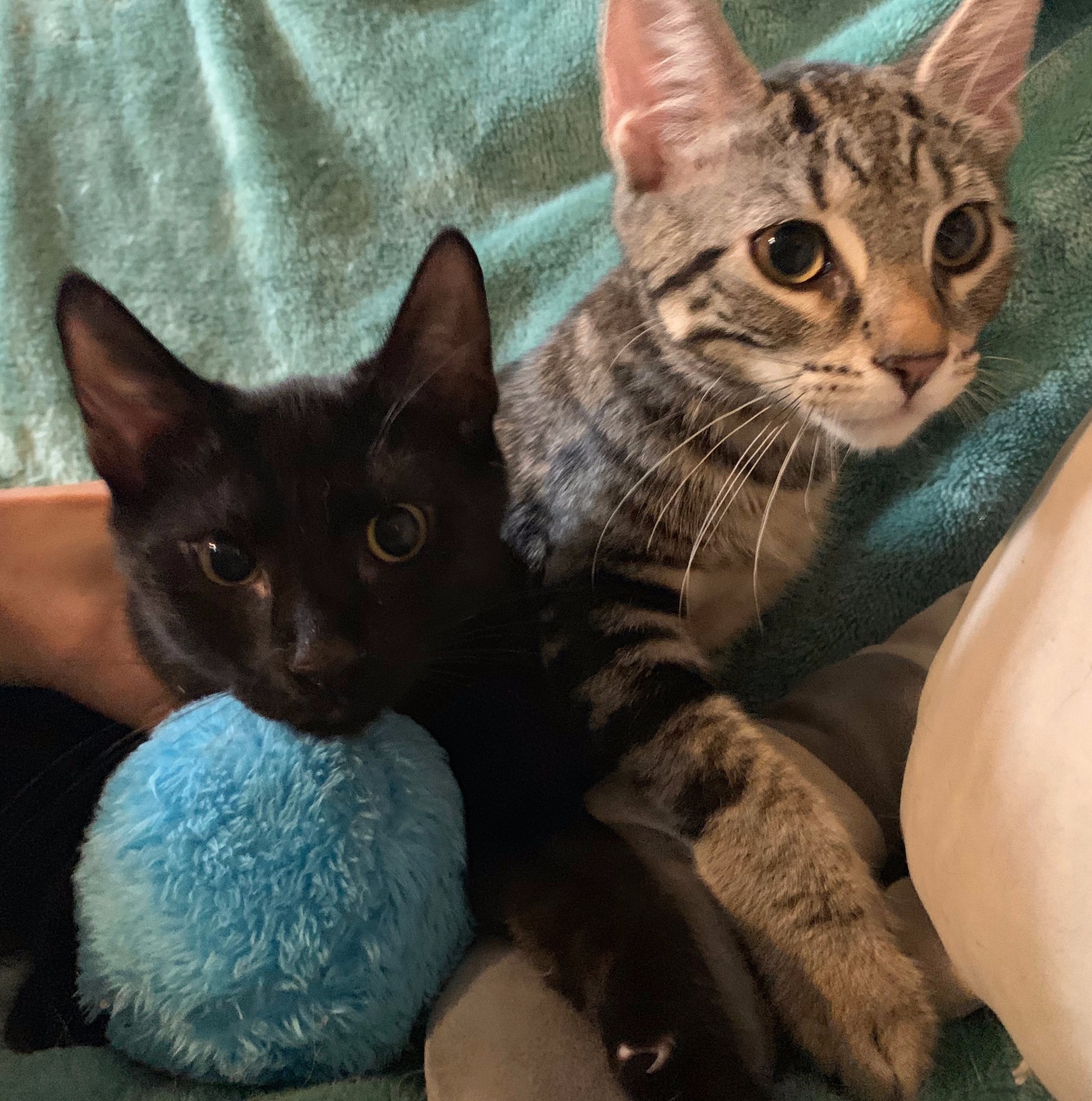 These are two bonded brothers with Kenji (black) who is clearly the boss and protective of his brother Toshi (tabby) who is learning very fact from the master.