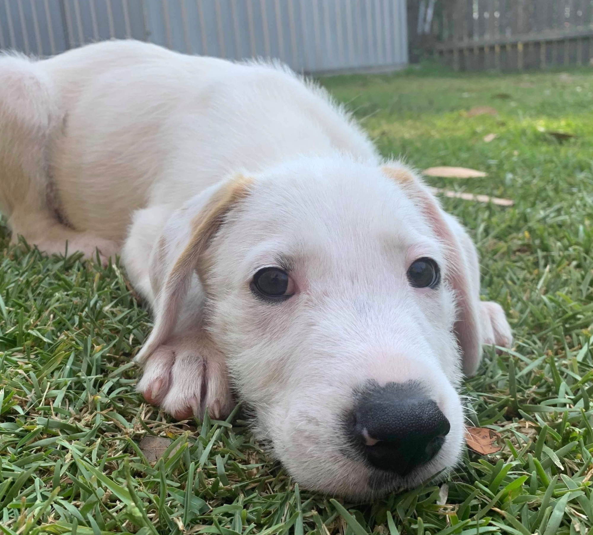 At this stage, we think Alfie will be a large dog when fully grown, so you would need to be prepared for this. He will need a medium to large size yard with height appropriate fencing, and a home where he will be treated as part of the family 👨👨👧👧🐕🐕 Being predominantly white, he will need plenty of outdoor shade and sunscreen applied, to help prevent skin cancer, which is quite common in white dogs.