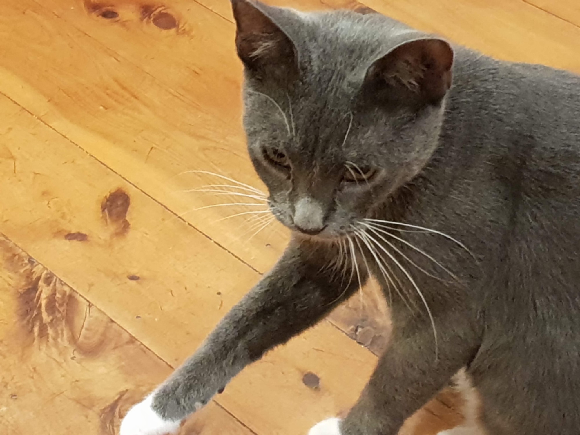 Smokey is a playful and sociable girl who loves to snuggle and sleep on the bed. She is a lanky girl and will fill out as she grows.
