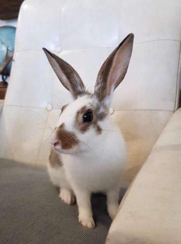Mellow is very friendly with the foster cat in her foster home and would happily live with a rabbit-friendly cat buddy. We also feel that she would be happy to be bonded with another bunny.