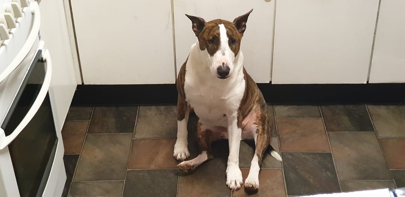 AVAILABLE FOR ADOPTION THROUGH BE THE CHANGE ANIMAL SHELTER INC - introducing gorgeous 5 year old bull terrier “Malcolm”. Unfortunately this boys' owner has made the hard decision to re-home him due to ill health so please note that Malcolm is being re-homed through no fault of his own . Malcolm is fully vet worked and loves people however does needs to be an only pet. He is fine if left while you go to work however needs to sleep inside at night as he has never slept a night outside, ever. Malcolm's current owner leaves him both inside and out whilst he goes out and Malcolm is fine. Malcolm is toilet trained and very well behaved inside but will bark when other dogs walk past. Malcolm travels well in the car. He would be fine with older teenage children but not little ones as he is a bit boisterous and still occasionally mouths when he is trying to play.