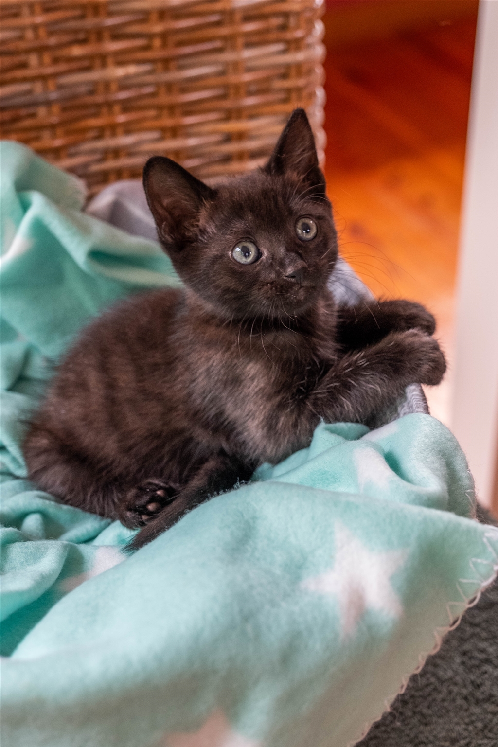 Licorice is a handsome little black tabby. His tabby patterning shines through his black fur just like his personality. He's confident and loves to explore, but is never opposed to a good old cuddle. When its nap time he loves to curl up on your lap and purr away.