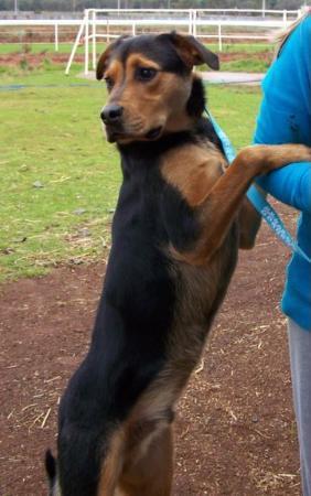 Hank is a lovely big sweetheart. He has been trained some basic obedience and has sit and attempted a drop and rollover. Hank is very social and playful in a gentle way. He mixes with other dogs and ignores or is rather timid of cats. He today met horses off leash and when unsure didn't challenge them or bark he came back to a human for reassurance. Hank will jump up gently for a cuddle that he loves. He was gentle with a young smaller teen girl. Hank leads very well. Hank will beed a secure yard to play in and would love another doggy playmate. If on acrage he will enjoy stretching his legs and will accompany you on a horse ride. He would also do well in a home with a smaller are but lots of walks along a beach or bush track, or playing in dog friendly parks. He will suit most family types from single or couples to a family with children possibly past the toddler stage due to his size
