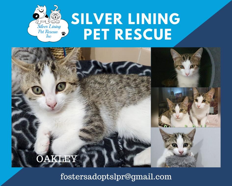 Oakley is a very cuddly and playful boy. He loves attention from his humans, meowing for snuggles and climbing on you. He is more outgoing than his brother Risotto. He loves his food!