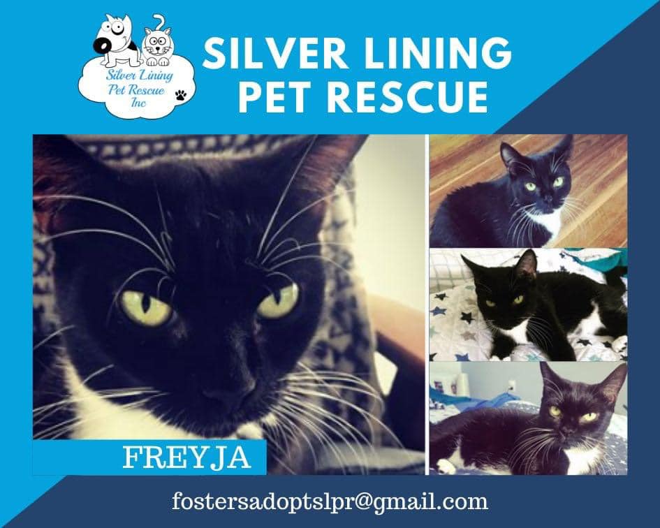 Hi! My is name Freyja! I have a beautiful, silky coat. I am the most adorable, sweet little girl there is! I am affectionate and love my pats and cuddles. I am amazing with children, other cats and big kids too! I love to lay around the house, find a nice sunny spot, chase balls and happily lie by your side. I am any easy going girl who will suit most families, preferable with another friendly cat to hang out with.