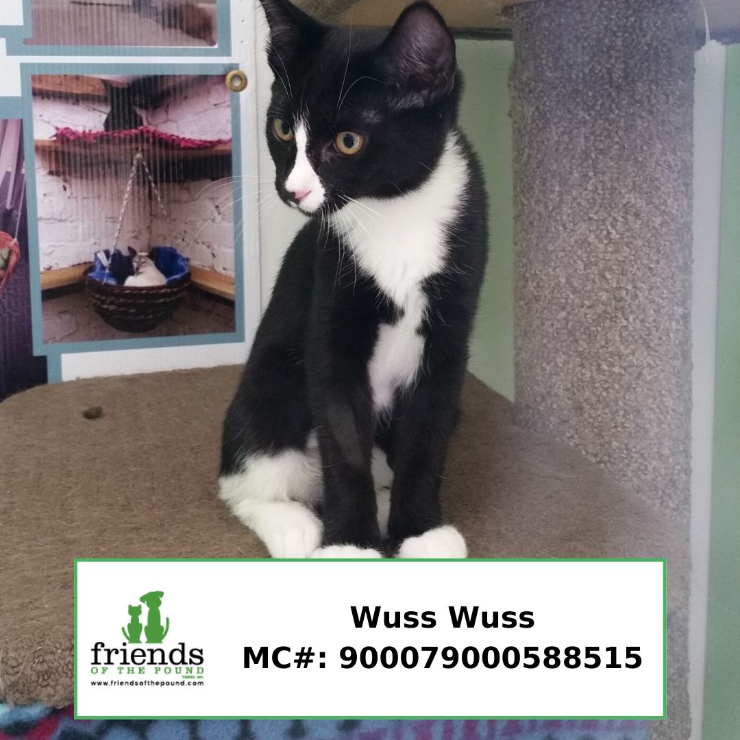 Wuss Wuss is a sweet, friendly, playful kitten. She would be best in an adult only home or family with older children.
