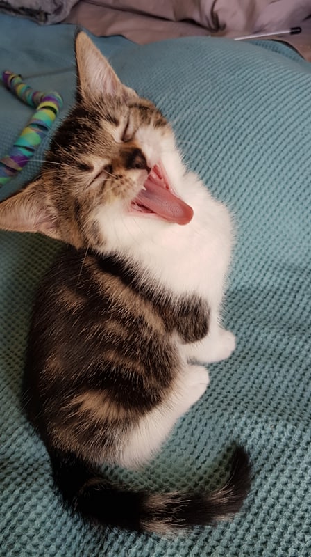 Maggie has taken a shining to her foster brother Crackle and they are often found together playing or snoozing. She is very cheeky and full of fun and is always looking for her next adventure,