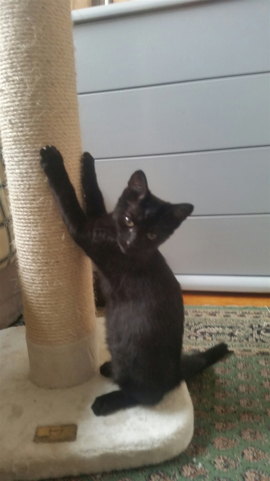 Zorro has to be a lucky black kitten coming to us unscathed in the midst of fire season. He is gentle, playful, likes to follow you around and purrs a lot.