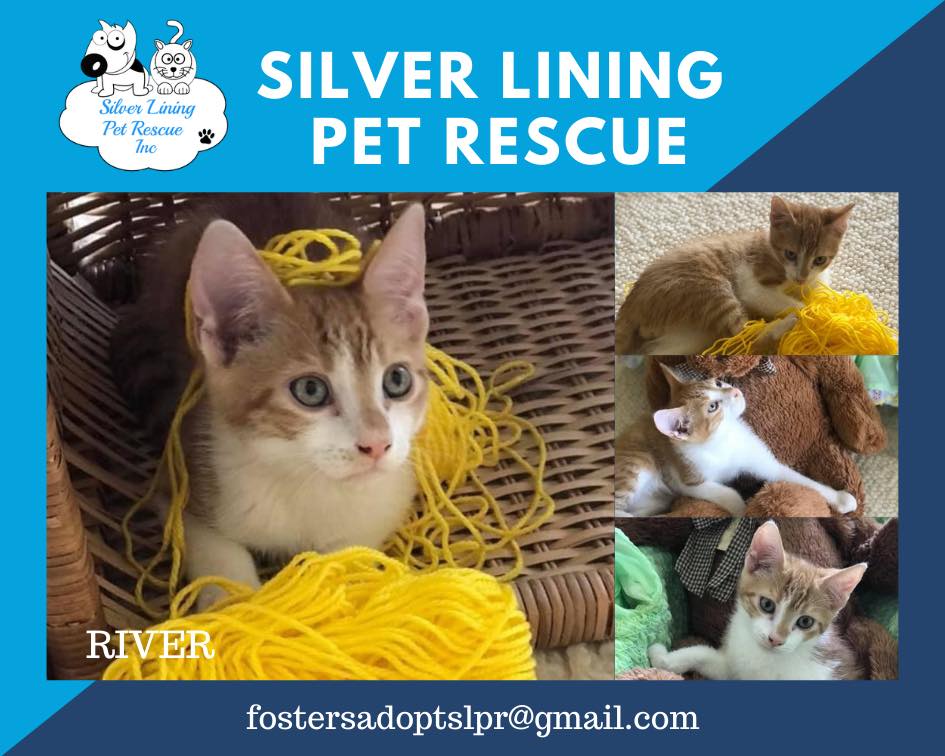 Hi everyone. My name is River and my siblings and I were found in a hospital car park. Luckily for us we were found and taken in by Silver Lining Pet Rescue. Now I am looking for a home where I will be loved and safe for the rest of my life.