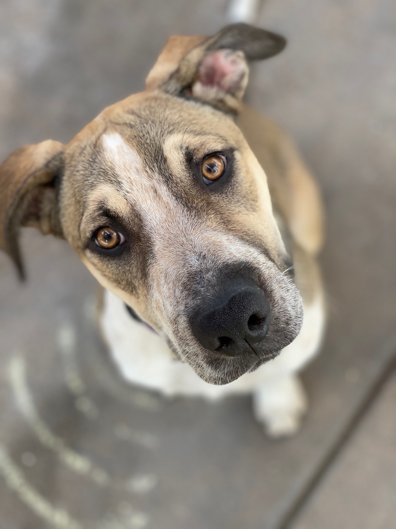 Her strong wagging tail and tendency to jump can knock over the little kids, so she might be better suited to an adult house, or one with older kids. In saying that, she is currently being fostered by a family consisting of 4 year old twins and a 2 old and with appropriate barriers and supervision can definitely make it work with a young family!