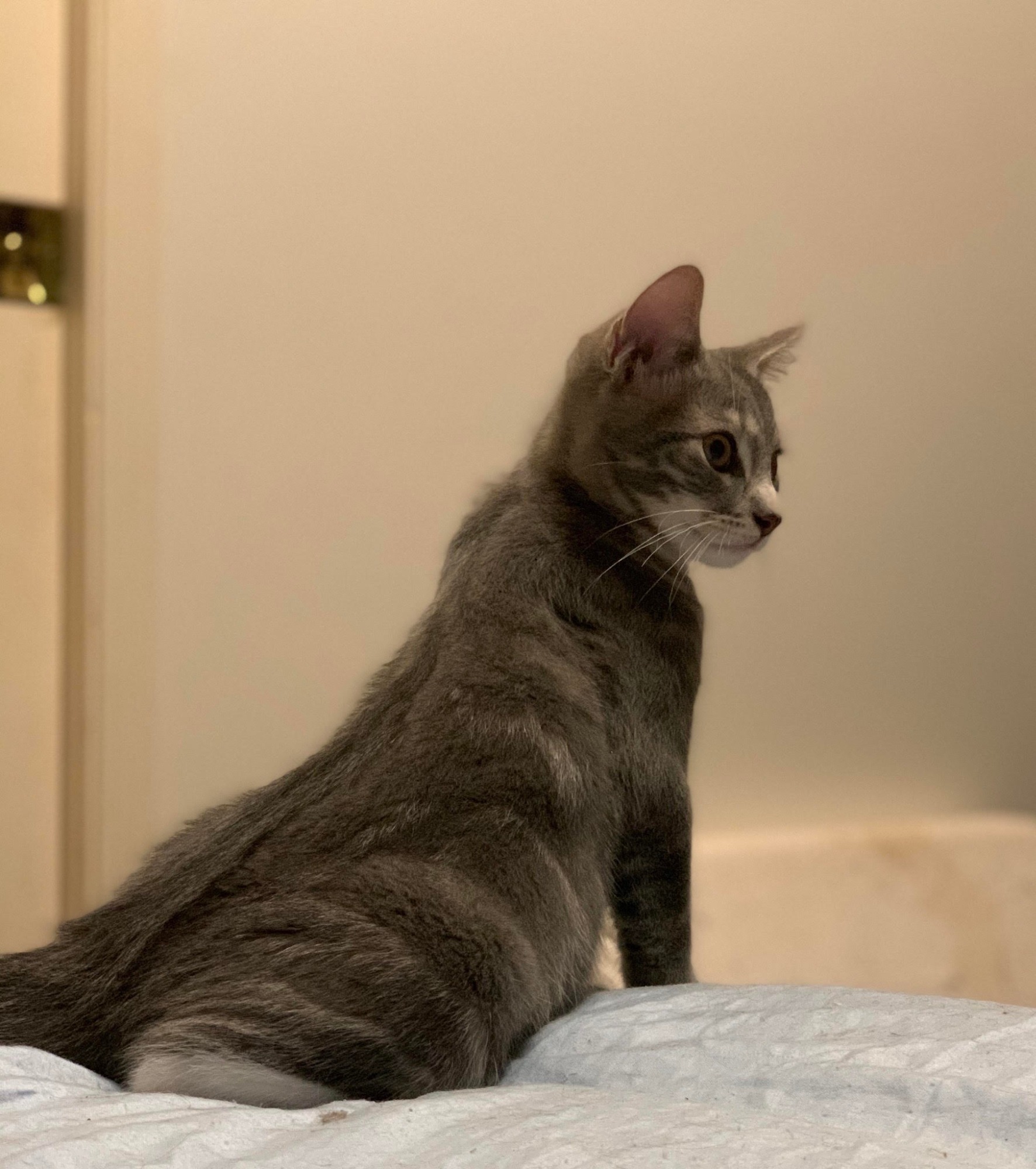 Beanie is a sweet young man that loves nothing more than to cuddle up next to his human no matter what your doing. Beanie is playful, and loves his toys, but will also sit back and watch his siblings play. He is happy to be by himself for periods of time. Beanie does have a habit of trying to eat or drink whatever you are trying to eat and drink, and he can be quite insistent on it, but then he looks at you with that gorgeous face and you melt. If this sweet little man sounds perfect for you then contact his foster carer to make an appointment to meet him. (Texts preferred)