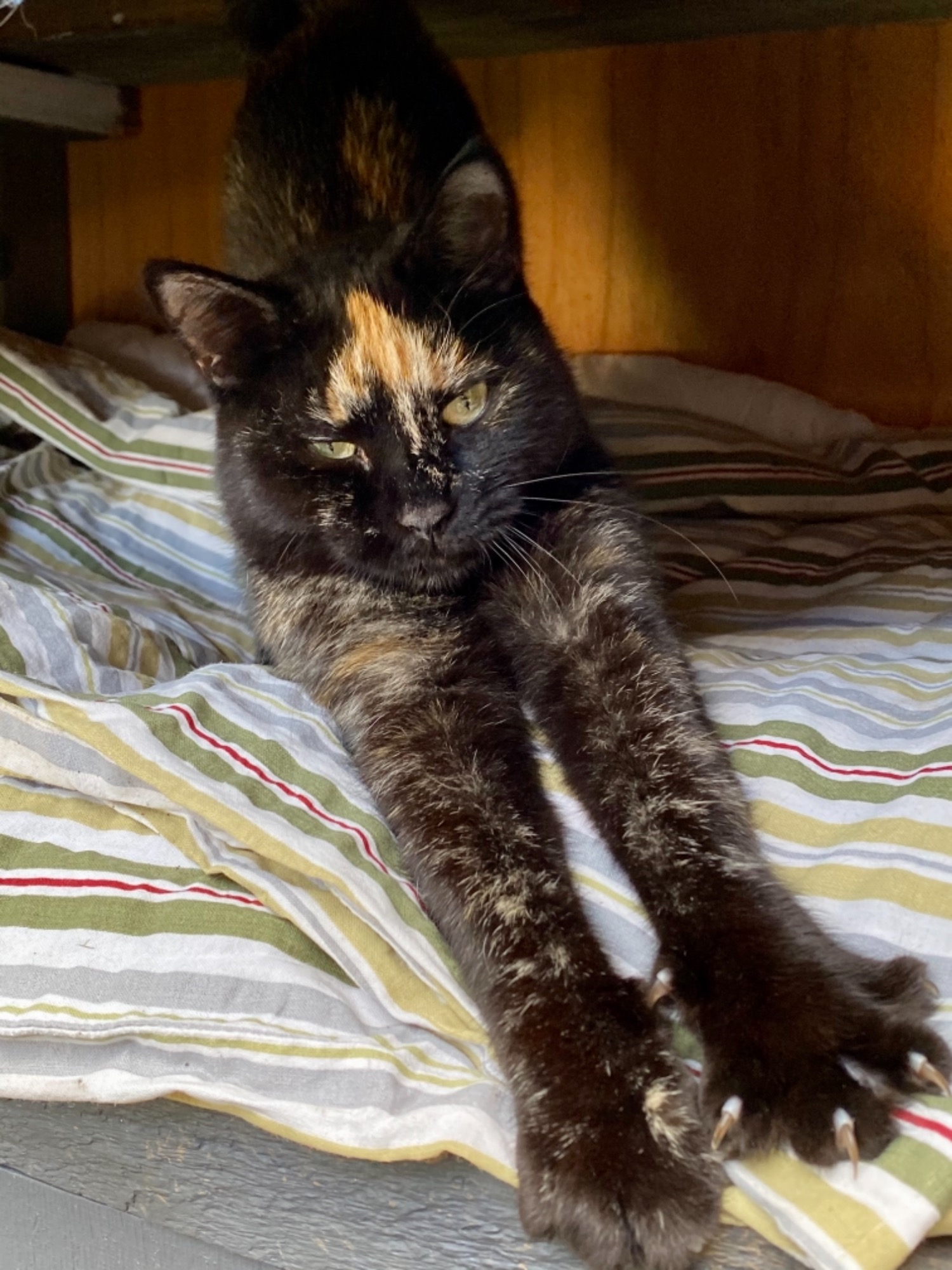 Was born in care. She is a black torty with a ginger patch on her forehead. Very clean, easy care and sweet.