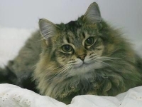 Piper was recently surrendered to the shelter because she was becoming just a little to friendly with the duck and geese that belonged to her owner. This was a very reluctant decision by her owner. Piper is excellent with other cats,just great with children and very loving. We recommend she not live with ducks!! she has a very thick coat so will need regular grooming