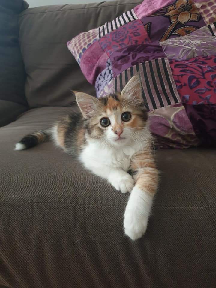 After all her crazy playtime has tired her out she will happily curl up into a ball & have a recharge nap 💤 she's fluffy, cuddly & loves her pats!