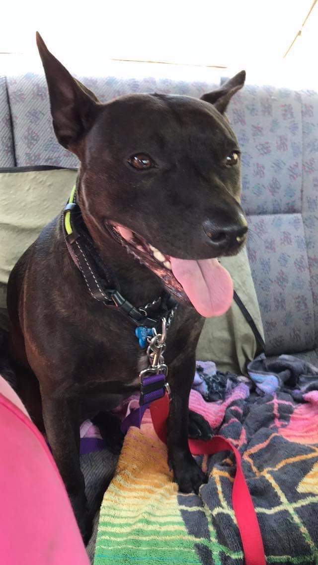 My name is Arlie. I am a 2 year old staffy cross female. I have all my basic commands down pat and am very well behaved but you’ll need to keep up with my training as being a staffy you give me an inch I’ll take a mile. I am very dog friendly and really quite submissive I don’t rock the boat and I am cat friendly but under supervision only because they’re a little bit more fragile than the dogs I play with and I get a bit excited to play with them. I am currently living with other dogs and cats and we all get along very well. I do like to eat by myself I really love my food and I love everyone else’s too if given half the chance but I have realised some dogs don’t like to share so we all get fed separately which just makes life easier. My foster Mum would like me to have a sibling in my new home as I don’t do very well on my own I like to have someone to play with and snuggle up with at nap time. She would also like to be assured that I am welcomed inside at night to sleep and have family time. I’m happy to play away and nap outside during the day but I really do love night time when I get to come in and be part of the family. I do get very excited for bed time but I settle very quickly because I love sleeping on the bed and I know if I settle and snuggle in I get to stay put for the night. If I can’t be welcomed inside that’s more than ok we understand that but I’m not the puppy for you because I really do enjoy my human time. I am very good in the the car and enjoy getting out and about I’m a little bit forceful on the lead but am getting better.