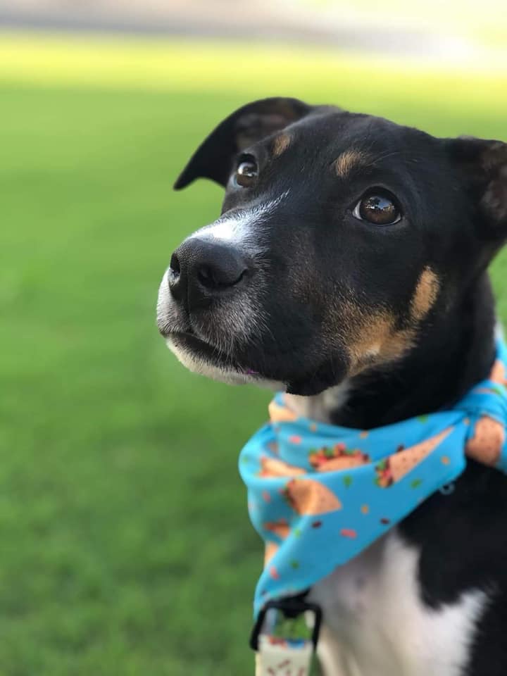 Stitch is very sweet-natured and inquisitive. He loves exploring the backyard, playing tug-of-war and he is learning to chase the ball.
