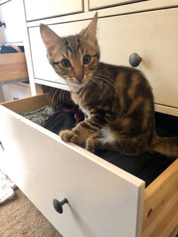 Keanu is a very handsome little adventurer. He is playful and loving and loves to explore, he is extremely entertaining with his kitten antics and he is also a smoochy boy who loves snuggles.