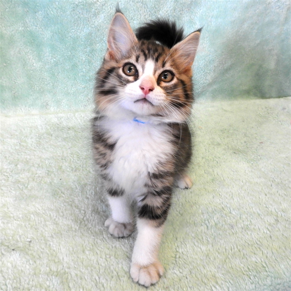 Cute as a button Wyatt is a delight to watch as he pounces around finding whatever he can to play with. Like all kittens he loves to play, eat and sleep.