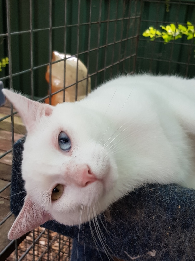 I could look at cat eyes all day long, majestic, enchanting tiny orbs of magical colours. All cat eyes are truly a sight to behold but Bowie’s are even more enchanting with his odd coloured eyes. Add to that his very affectionate nature, how could you not instantly fall in love with this big boofy boy! Bowie would love to find a family with older children and no dogs. He wouldn’t mind you having one other gentle cat that he could gradually get to know but would also be very happy being an only cat so he doesn’t have to compete with anyone for your attention! Bowie has a lot of love to give and is ready to find his forever family.