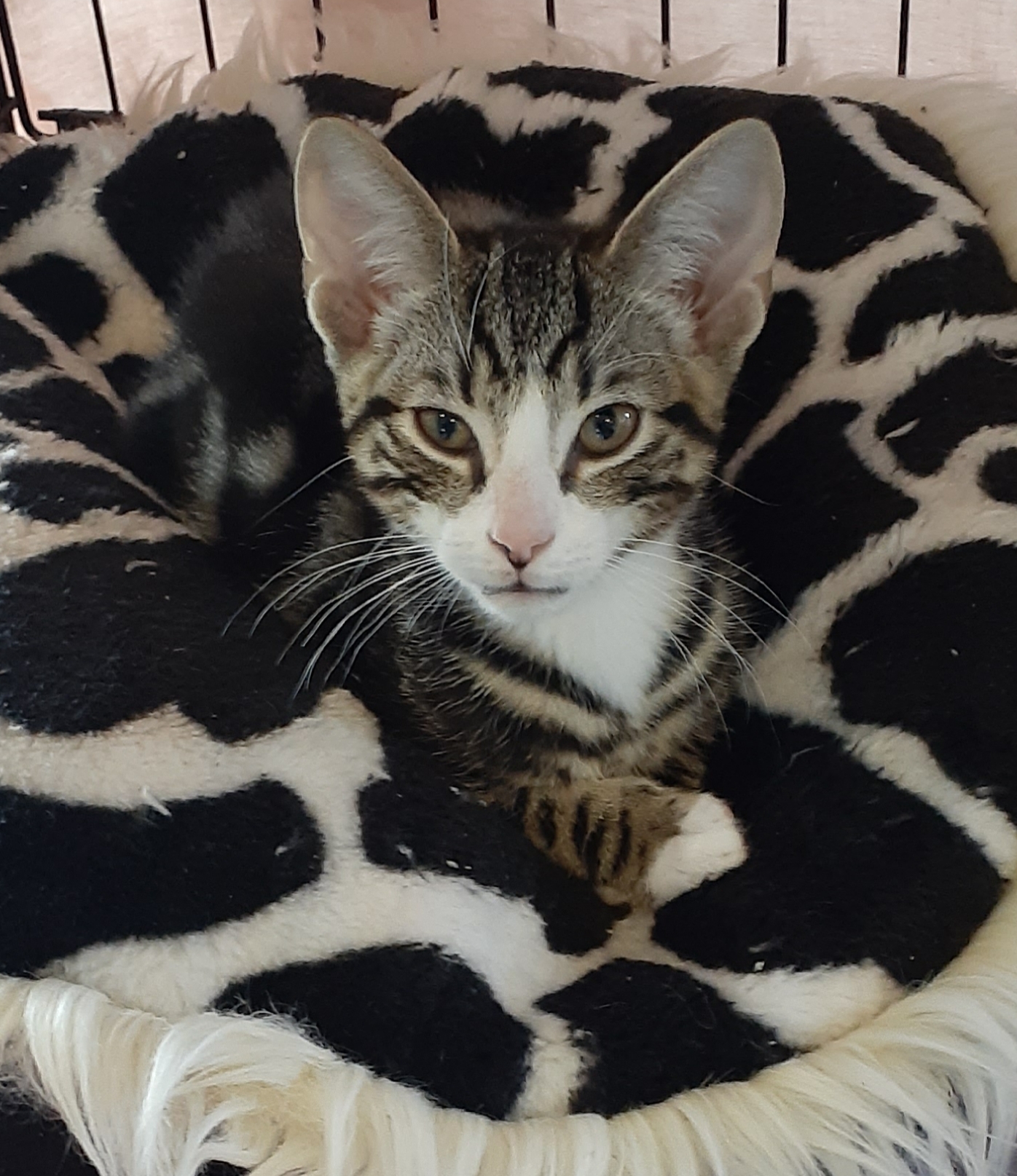Super friendly, playful and confident. Okay with other cats and cat friendly dog once he's used to them. Will make a great addition to any family.