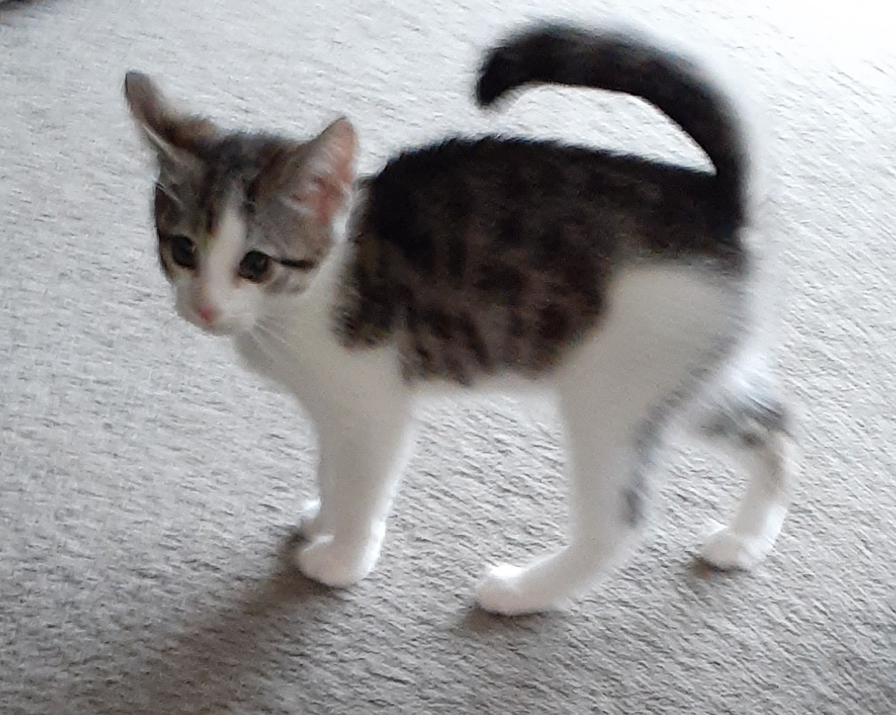 Very playful and friendly little girl. Okay with cat friendly dogs. Confident girl who I'm sure would settle in with another cat. Would suit any family. Does like to climb legs to get cuddles.
