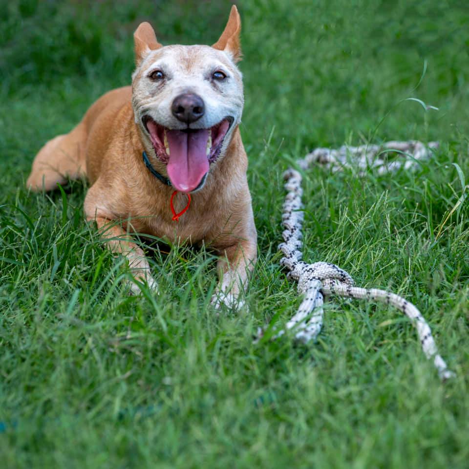 Calvin is an older boy with the heart of a pup. He loves his daily walks and play time in the back yard with his foster brother and sister. Calvin is a smiley boy, who is very well mannered and trained to sit, stay, shake paw, and drop for dinner time.