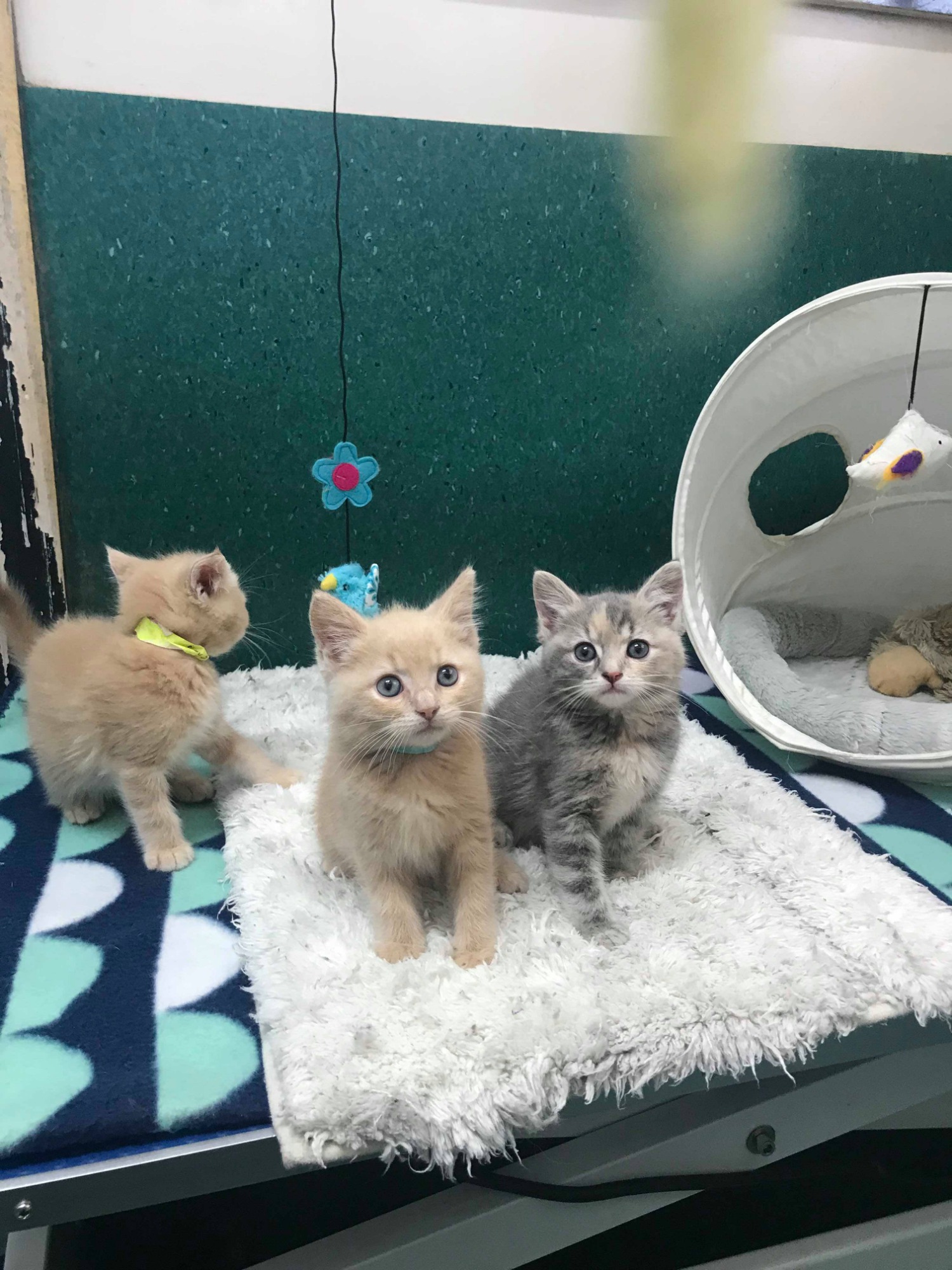 Pablo and his two brothers all looked identical when they first came in, so we had to put little coloured collars on them to tell them apart! Pablo is the most affectionate of the litter, during his time in foster care he's been carried around like a baby and cuddled by our nurse's toddler, and he just laps up all of the attention and purrs the whole time.