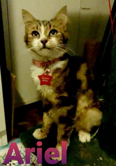 Ariel came into care with 5 newborn babies who all passed apart from one as mumma and babies were all really sick. Ariel is a love bug and does tolerate other cats but she must also have her space.