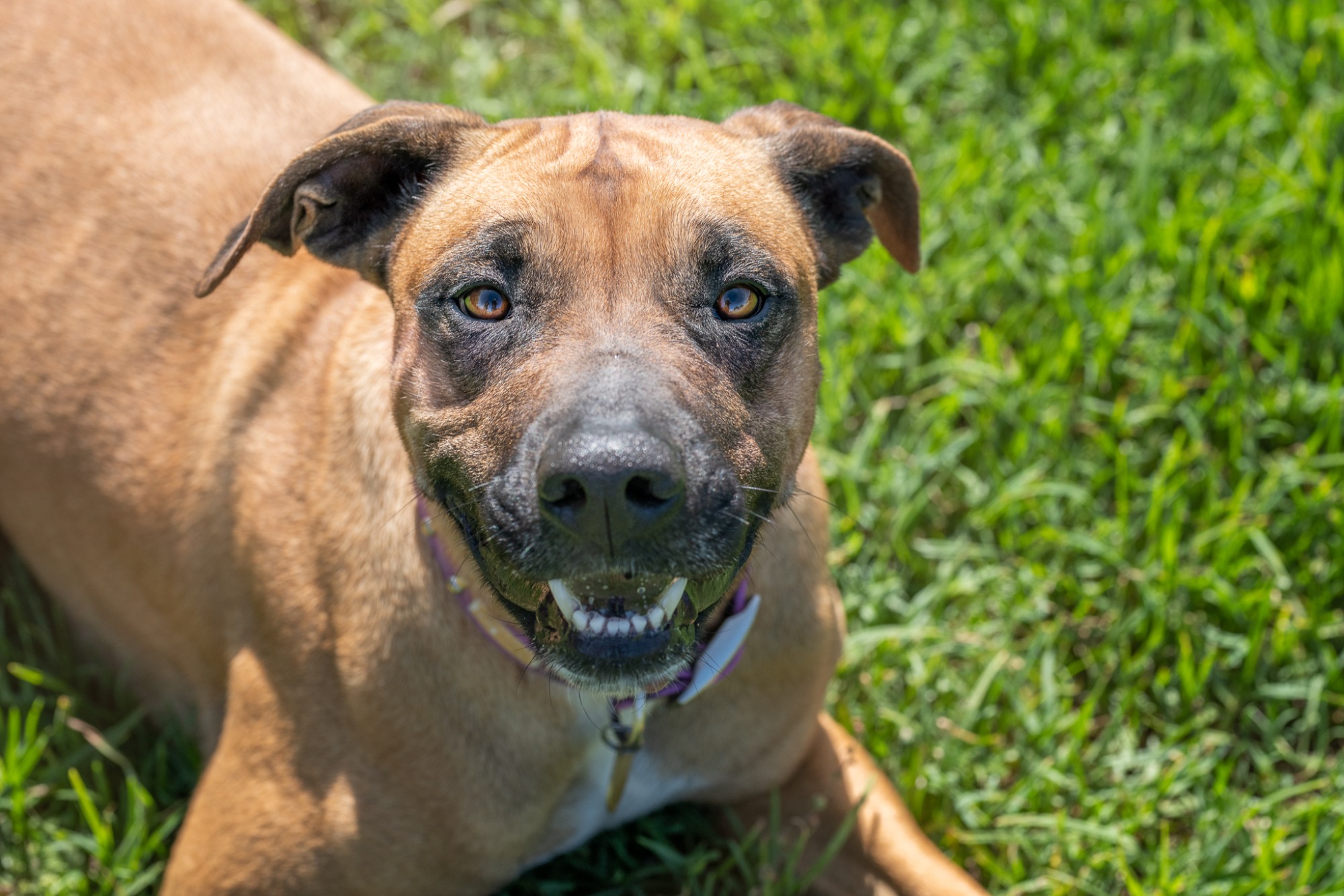 Praise and treats are her favourite things in the world. She loves to chase balls but isn’t great at returning them.