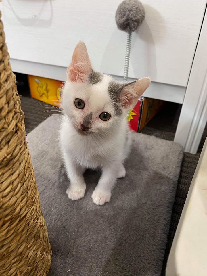 Charlie is SO unique with his white and grey spots (he even has a smiley face on his back!). He is very playful, but also quiet at times and has a really lovely temperament. Charlie loves human company so if you are home a fair bit then he would love to be a part of your daily life.