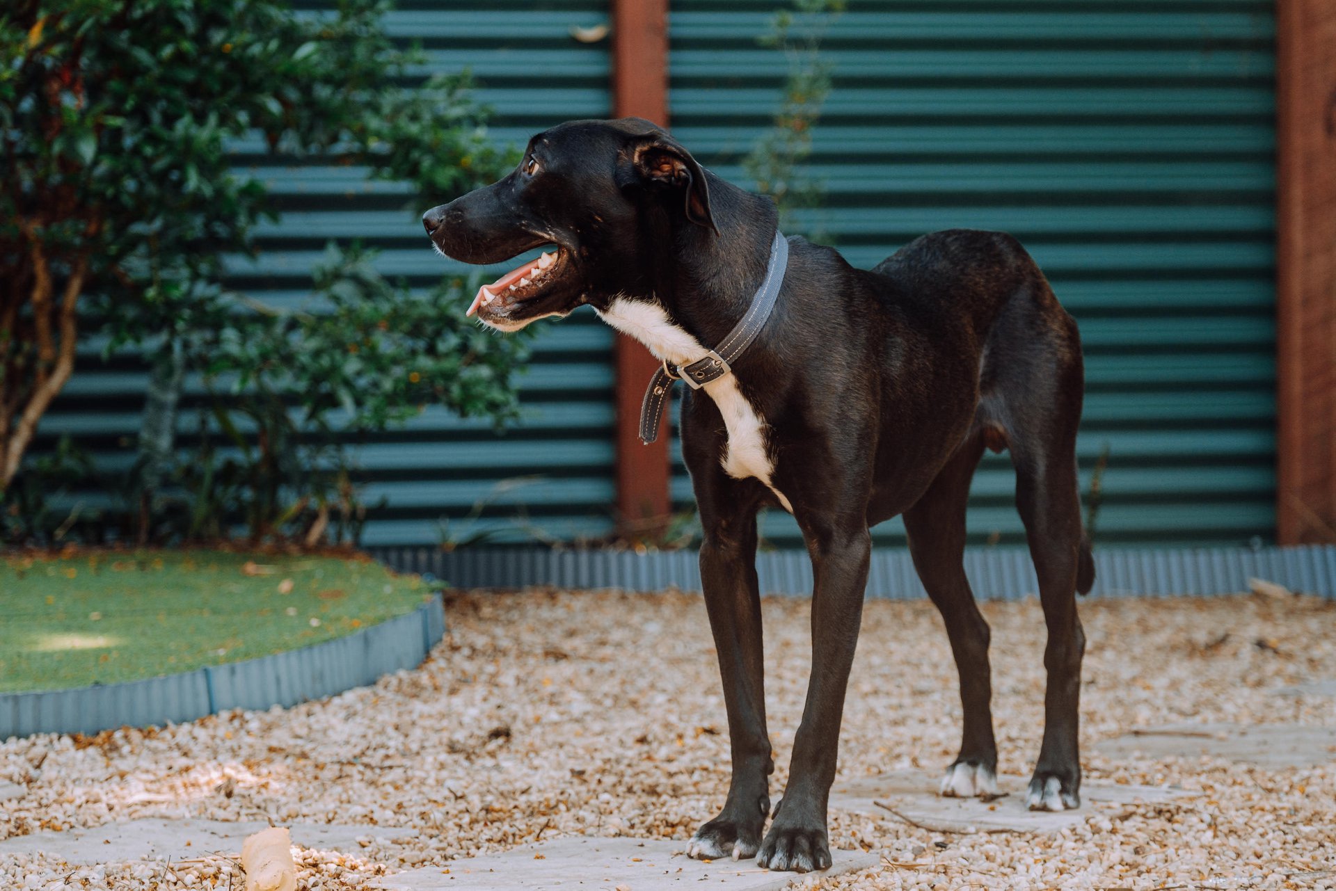 Currently I sleep inside in lounge room in crate most nights at my foster home, occasionally not in crate if I'm not trying to sneak into my foster dad's bed, hehe. I am alone for 2-3 hours per day and currently live with 2 dogs and a cat. I am friendly with the cat and give her space but I do like to see what she is up to. I am not fussy when it comes to fencing, I currently live in a yard where the lowest fence is 4ft, I'm not interested in leaving the yard as I have everything I need here. I live with a teenage boy and an adult also, and love both so much!