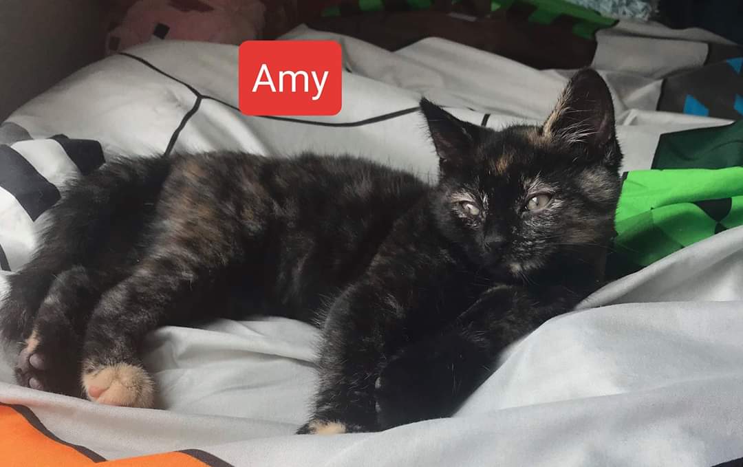 Amy the domestic short hair torti girl is ready to find a loving family. She is in foster care with children, dogs and adult cats.
