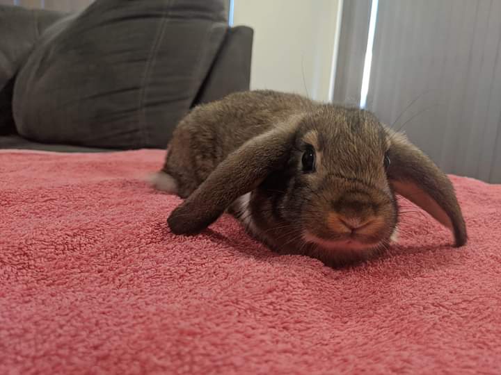 Brinley is a sweet, sassy little lady who loves chasing the cats. She is quite the bossy boots and will push the cats off the couch and chairs if she feels they are in her spot. Brinley is lovely with other bunnies and pending a meet and greet would make wonderful friend for another bun. Brinley enjoys playing hide and seek. She loves tunnels, boxes, toys and snacks. If you think you can give this lovely, brave little lady a forever indoor home please contact us today. No interstate adoptions