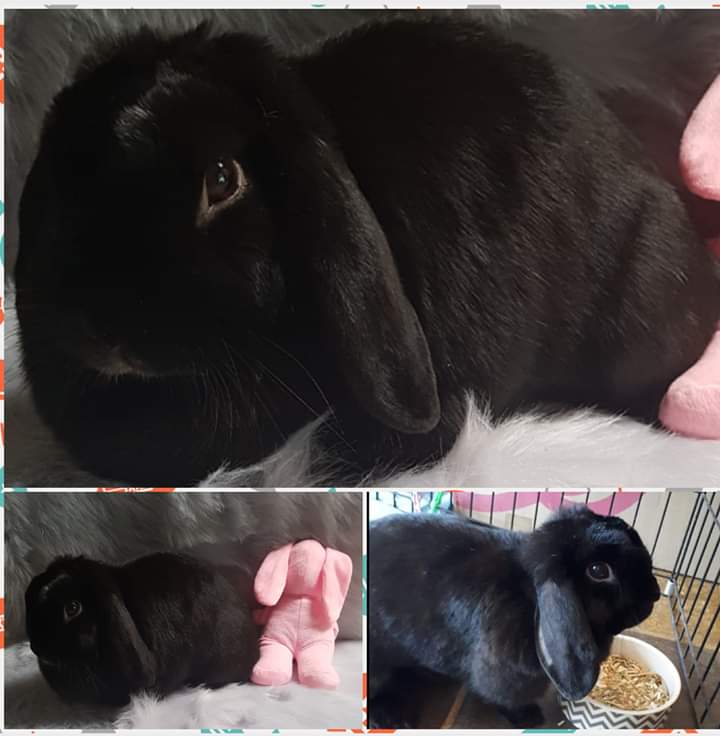 This gorgeous black mini lop girl is around one and a half years old, has had all of her vetwork done, and is ready to meet you. Wispa will run up to you for pats and loves, but on her terms, and if you sit on the floor with her she'll let you pat her till your hand gets soređ€Ł. This ebony sweetheart is good with cats, dogs, kiddos, and is not fussed by a busy or noisy household. You'll get a puppy dog stare from this one when she wants her faves too, celery leaves and buk choyđ. Indoor home only. No Interstate adoptions