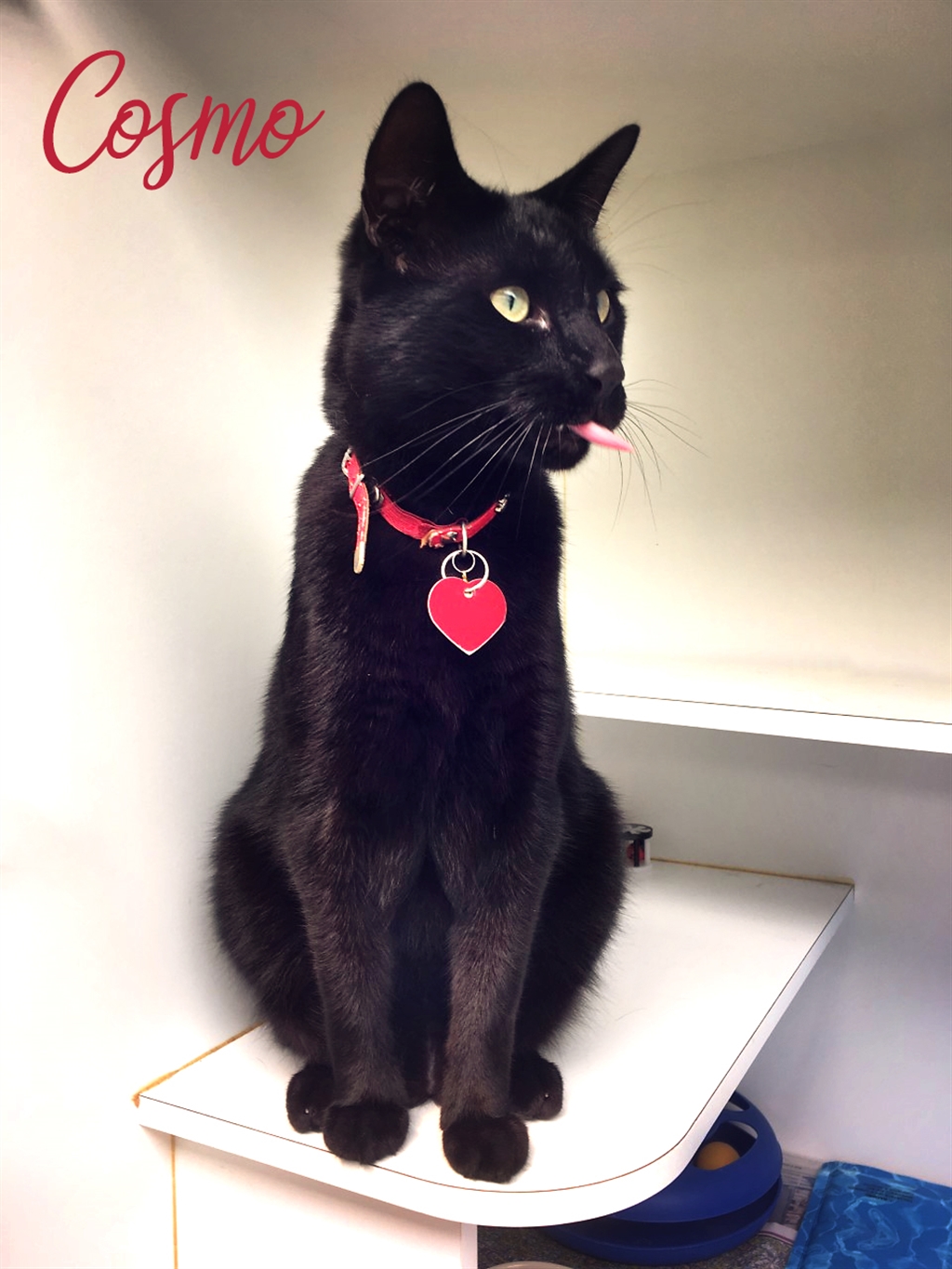 Cosmo is a really sweet cat but he can be a bit shy when he first meets you and needs a little time to get to know new people. He loves to have his tummy scratched and follows his carer round, plonking himself at her feet for a bit of attention every chance he gets. If you are willing to give him the time to get to know you he will make a really amazing family member.scing