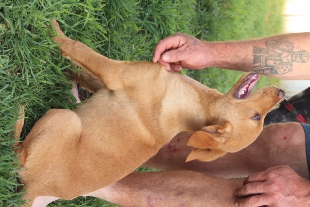 Shep is curious of our cat, gentle with the kids (although he does need reminding every now and then not to jump up for kisses) and gets on well with the resident dogs. He has a cute little red nose so will need sunscreen during the summer months.